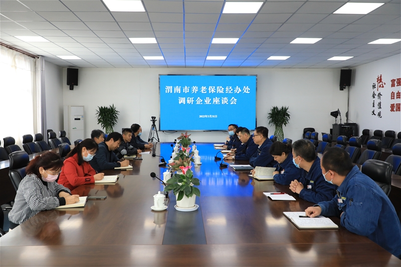 3月31日,渭南市養(yǎng)老保險經(jīng)辦處副處長劉忠讓、韓城市養(yǎng)老經(jīng)辦中心主任成軍奇一行來公司走訪調(diào)研,并召開座談會。公司副總經(jīng)理朱元洲、行政管理部相關(guān)負責人參加。