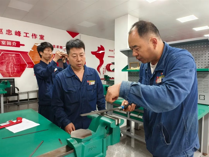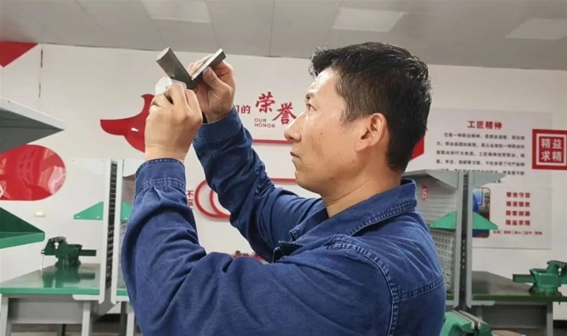 “此次比賽大家在打磨過程中一定要精準(zhǔn)計算,將誤差降低在正負(fù)0.1mm之間……”在“操檢合一”鉗工技術(shù)比武現(xiàn)場,評委趙忠峰正為學(xué)員現(xiàn)場講解比賽要領(lǐng)。