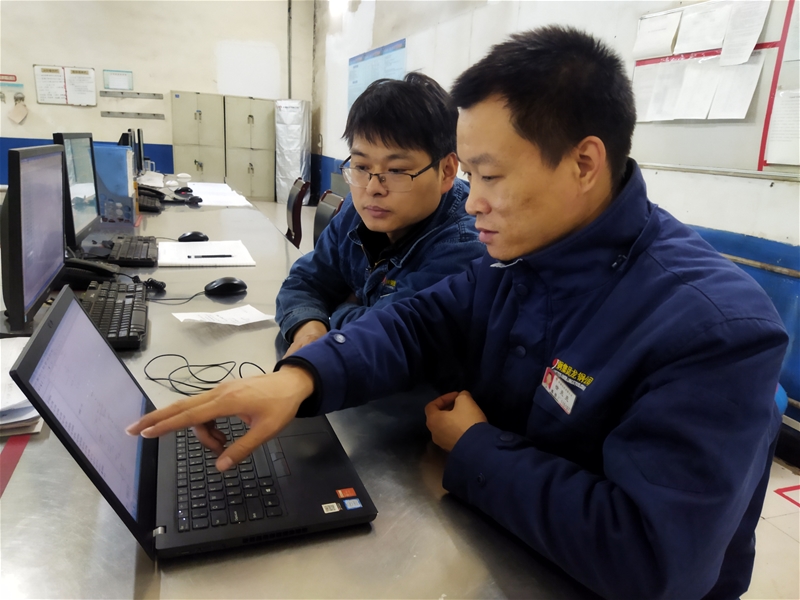 2022年,3#高爐大檢修后,高爐運(yùn)行過程中爐頂布料器總是出現(xiàn)布料不均勻的現(xiàn)象。他和師傅楊澤一連幾天堅(jiān)守在3#高爐服務(wù)器室,往返于高爐爐頂、主控樓配電室、高爐服務(wù)器室。通過現(xiàn)場查看爐內(nèi)布料器運(yùn)行、配電室變頻器運(yùn)行情況,找出故障點(diǎn),提出解決方案,調(diào)整配電室變頻器參數(shù)、電腦修改程序等作業(yè)措施,最終保障了布料器布料均勻,高爐運(yùn)行正常。