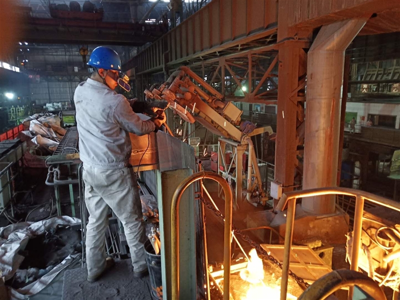 再苦再累不松勁。不論是刮風(fēng)下雨還是春夏秋冬,連鑄生產(chǎn)現(xiàn)場永遠(yuǎn)都被高溫灼烤環(huán)繞。而7月的連鑄現(xiàn)場在不透風(fēng)的廠房里儼然如同熱滾滾的“汪洋”。看,臺上中包工一個個汗流浹背,汗水從安全帽底下流到臉頰,下巴上的汗珠一顆、一顆掉在地面。眼睛早已被汗水模糊了視線,他隨手用袖口一擦,眨了眨泛酸的眼睛,又繼續(xù)忙活。臺下3CT的切割工站在火紅的鋼坯旁,鎮(zhèn)定地用氧槍在切割尾坯,臉頰早已被灼烤的發(fā)紫,衣服被汗水澆透又被高溫蒸發(fā),留下一道道白色的汗?jié)n,而手里握著的割槍卻始終保持一個動作,直到尾坯被割斷。雖然工作服已經(jīng)被高溫灼烤到燙手,腳上的勞保鞋里面全是汗水,但是他仍然沒有停止自己的工作,收起氧槍后,使勁吹了一下掛在脖子上的口哨,又繼續(xù)指揮天車開始吊運尾坯。